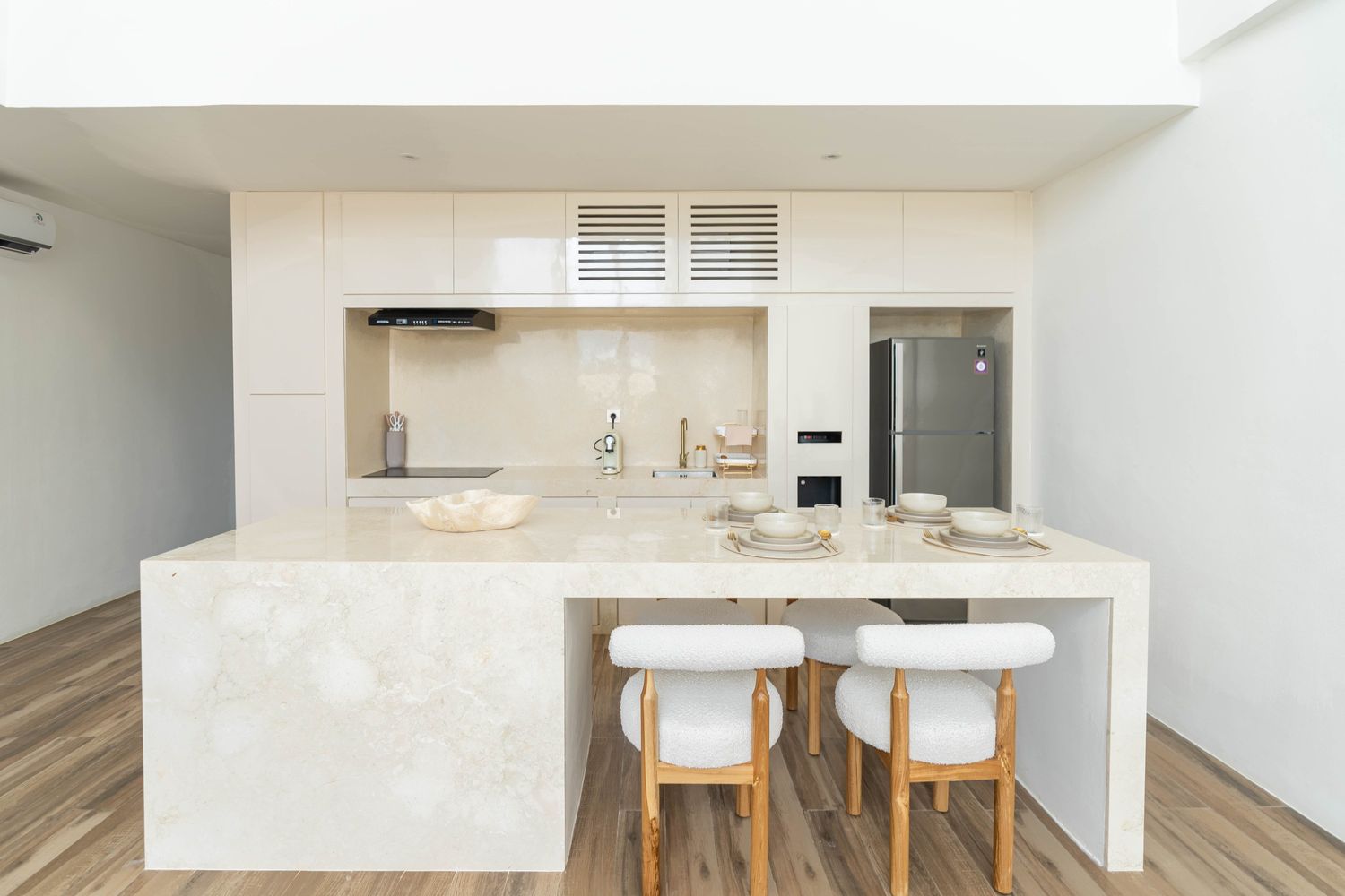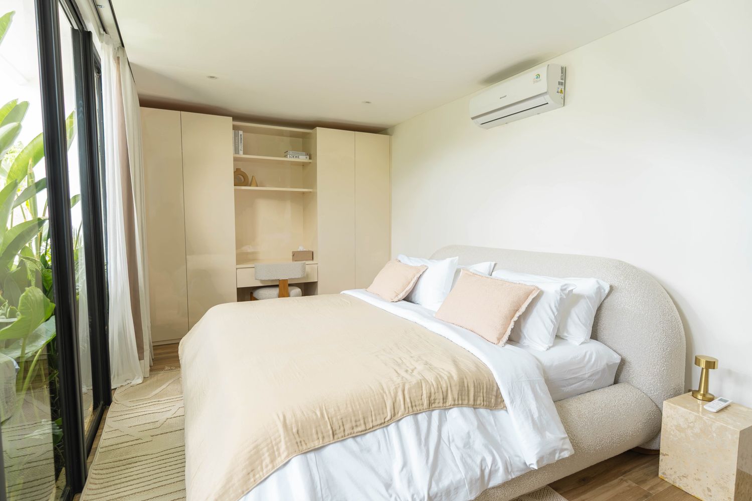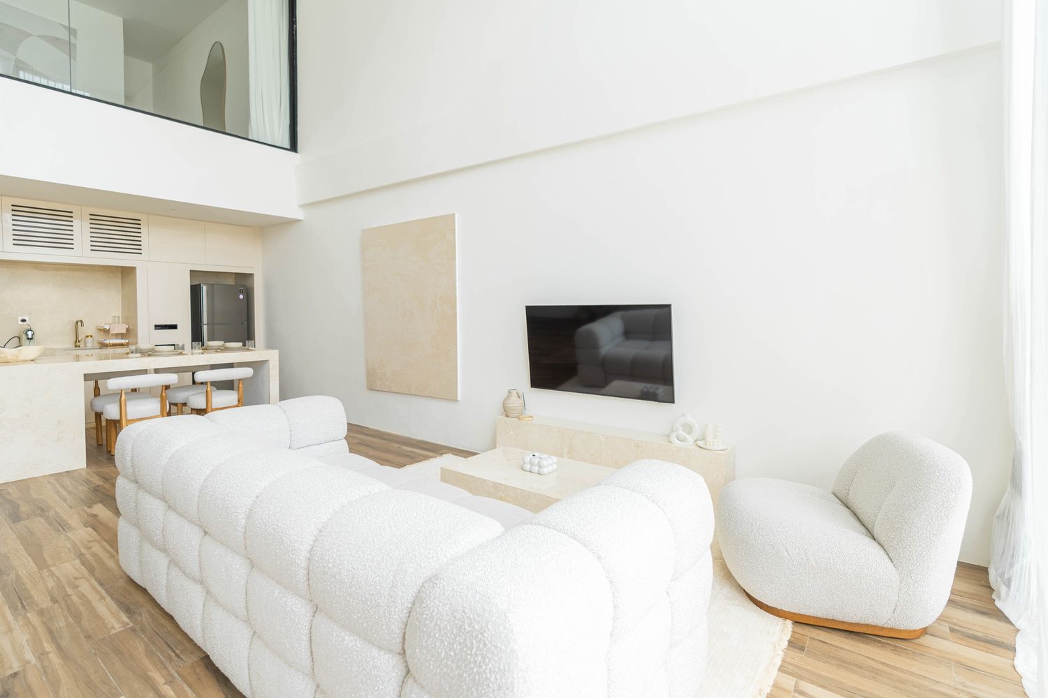 Designed with soft bouclé furnishings and a palette of warm whites and natural textures, this villa offers a peaceful escape.